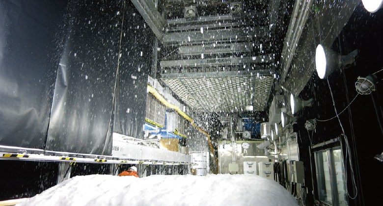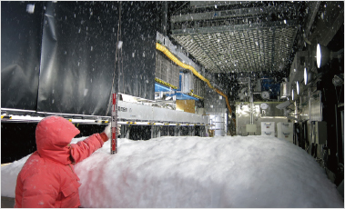 Basic and applied studies related to snow disasters as well as snow science are conducted using a large cold room with a snowfall machine, wind tunnel and so on.