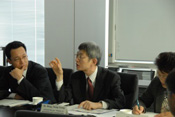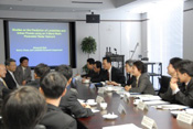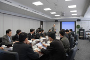 On the 8th of March, 2007, a total of fifteen researchers and specialists from eight government institutions of Korea visited NIED, the institutions were the Ministry of Information and Communication, National Information Society Agency, Korea Meteorological Administration, the Ministry of Government Administration and Home Affaires, National Emergency Management Agency, Korea Communication Commission, Emergency Planning Commission and Korea Telecommunication Operators Association. The purpose of their visit was to 1) study disaster management policy and 2) study extreme technologies for disaster prevention and the measurement of how to convey warnings of typhoons and earthquakes. After the greeting presentation from the Konaka Executive Director of NIED, two researchers of NIED presented lectures: 1) Dr. Horiuchi, Principle Senior Researcher, Disaster Prevention System Research Center explained the Earthquake Early Warning System, 2) Dr. Maki- Director, Storm, Flood and Landslide Research Department talked about the research of Storm, Floods and Landslides at NIED. The participants were also given a tour of the three main facilities at NIED: the Data Center , the Large-scale Earthquake simulator and the Large-scale Rainfall simulator.