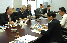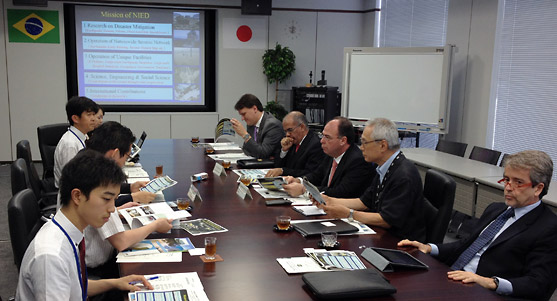 On the 5th of July, Mr. Fernando Bezerra Coelho, the Minister of National Integration of Brazil visited NIED headquarters in Tsukuba accompanied by Mr. Humberto de Azevedo Viana, the National Secretary for Civil Defense and others. They made a courtesy visit to the President of NIED, Dr. Yoshimitsu Okada after attending the World Ministerial Conference on Disaster Reduction in Tohoku which was held on the 3rd and 4th of July.