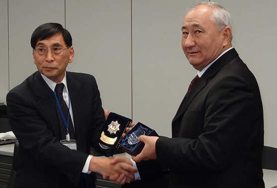 H.E. Tursinkhan Khudaybergenov(on the right) and President, Dr. Okada(on the left)