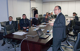 Director of the Earthquake and Volcano Research Unit, Dr. Shoji Sekiguchi explaining the Seismograph Networks of NIED.