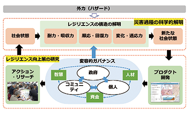 As a project, we are promoting comprehensive research and development aimed for consilience to realize a resilient society, as well as basic and fundamental research and development necessary for consilience.