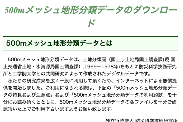 Geomorphologic database per 250m mesh and 24 types in Niigata and the neighboring areas.