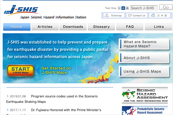 Various maps of the National Seismic Hazard Maps for Japan and the downloading of numerical data is available.