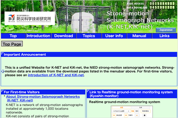 K-NET is a network of strong-motion seismographs installed at approximately 1000 locations nationwide. K-NET is capable of recording strong and destructive seismic motions.
