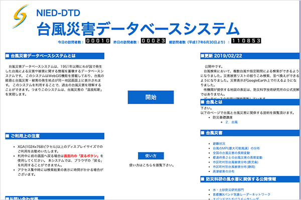 Available to look over the situation of disasters and damages caused by the Typhoon after 1951 in Japan.