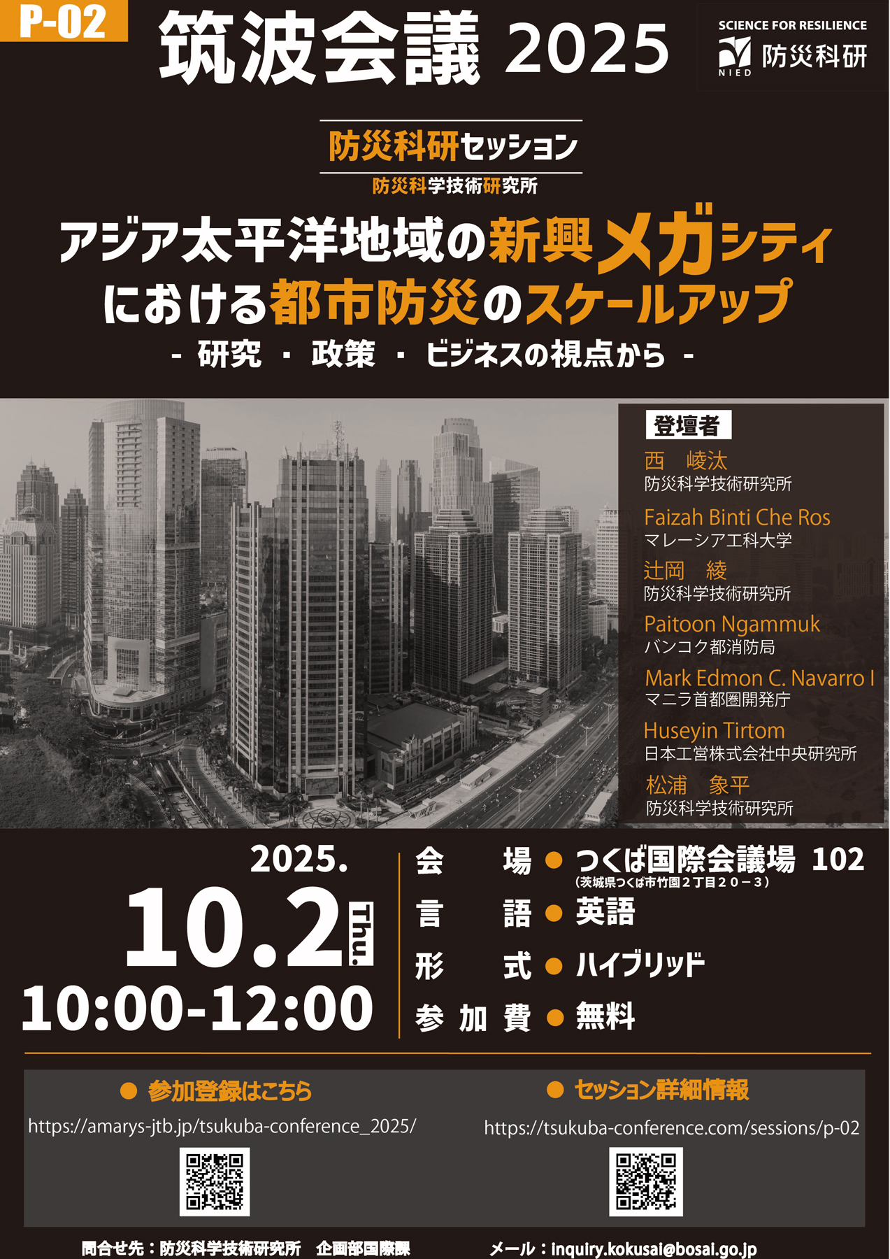 筑波会議 2025 防災科研主催セッション「アジア太平洋地域の新興メガシティにおける都市防災のスケールアップ:研究・政策・ビジネスの視点から」