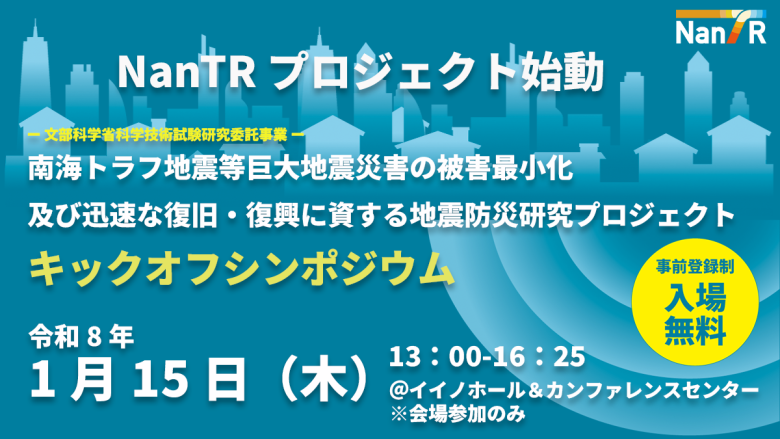 南海トラフ地震等巨大地震災害の被害最小化及び迅速な復旧・復興に資する地震防災研究プロジェクトキックオフシンポジウム