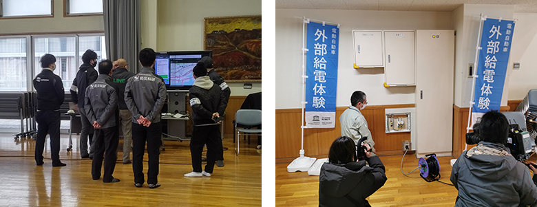 大規模停電時の給電支援のために、一般生活者が保有する電気自動車(EV)と避難所とのマッチングをLINE 公式アカウントを通じて実現するシステム。