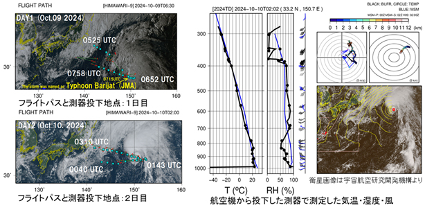 図3:2024年10月9-10日に台風第19号を対象に実施した航空機観測の概略図。