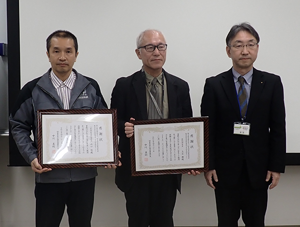 左から山口悟上席研究員、上石勲特別研究員、福島県県北建設事務所