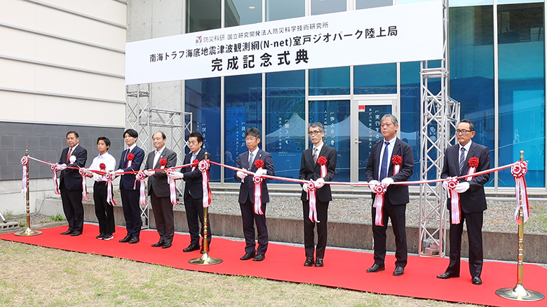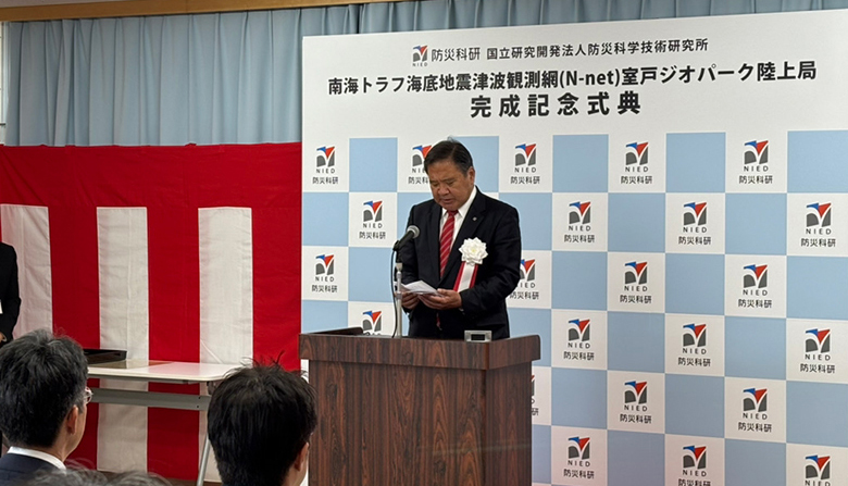 南海トラフ海底地震津波観測網(N-net)室戸ジオパーク陸上局の完成記念式典が開催されました