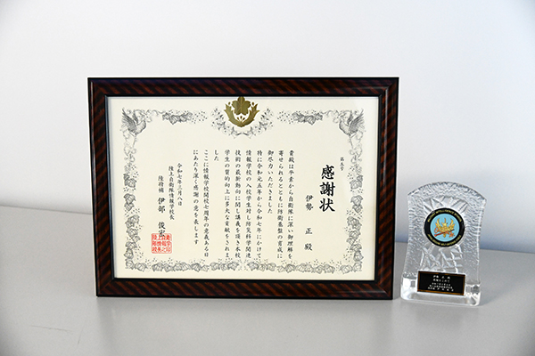 防衛省陸上自衛隊情報学校より感謝状をいただきました