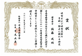 佐藤雪氷防災研究センター長が「吹雪および吹雪災害の予測・防止に関わる研究」で日本雪氷学会学術賞を受賞