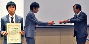 観測・予測研究領域 地震・火山防災研究ユニットの小園誠史研究員、東京大学地震研究所所長の小屋口剛博教授(本所客員研究員)の2名が日本火山学会論文賞(第14号)を受賞し、日本地球惑星科学連合2012年大会中の5月24日に表彰式が行われました。日本火山学会論文賞は、雑誌「火山」あるいは「Earth, Planets and Space」に掲載された論文中、火山学に関する独創的で特に優れた論文の著者に授与される賞です。