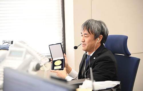 受賞した三好崇之主幹研究員(オンライン開催のためリモートで授与)