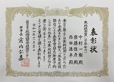 寒地技術シンポジウム 寒地技術賞(学術部門)を受賞しました