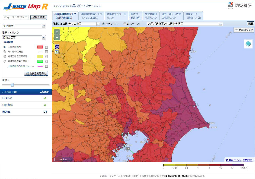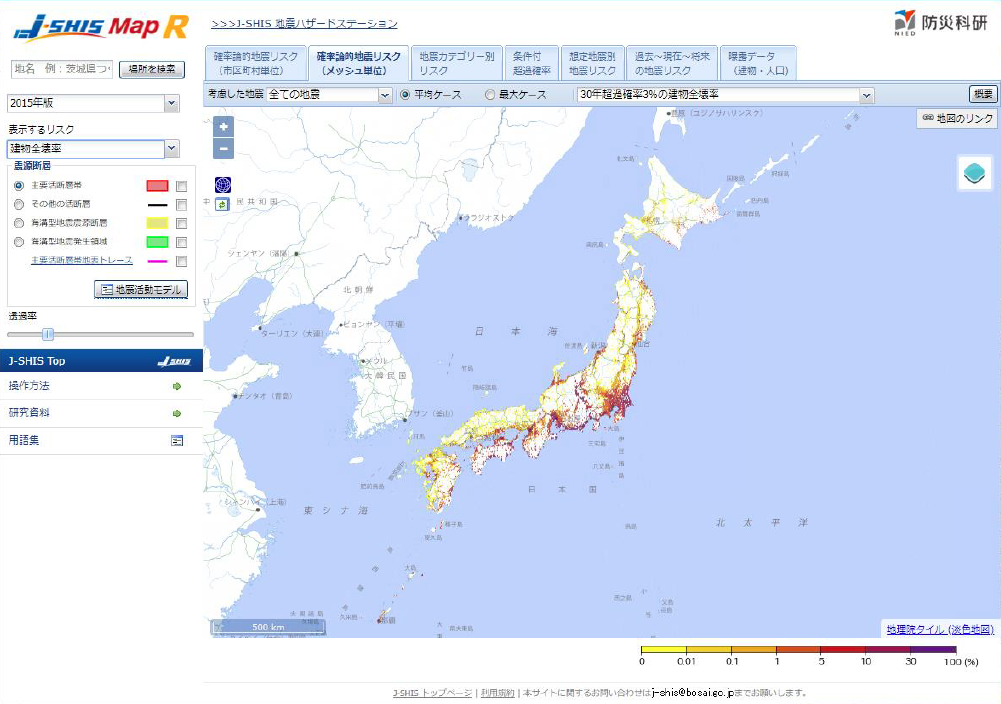 日本全国の地震リスクの閲覧システム (J-SHIS Map R)の公開