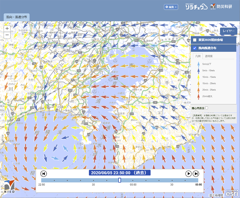 図2 風向・風速分布の表示例(年月日・時刻はダミーで実際とは異なります)