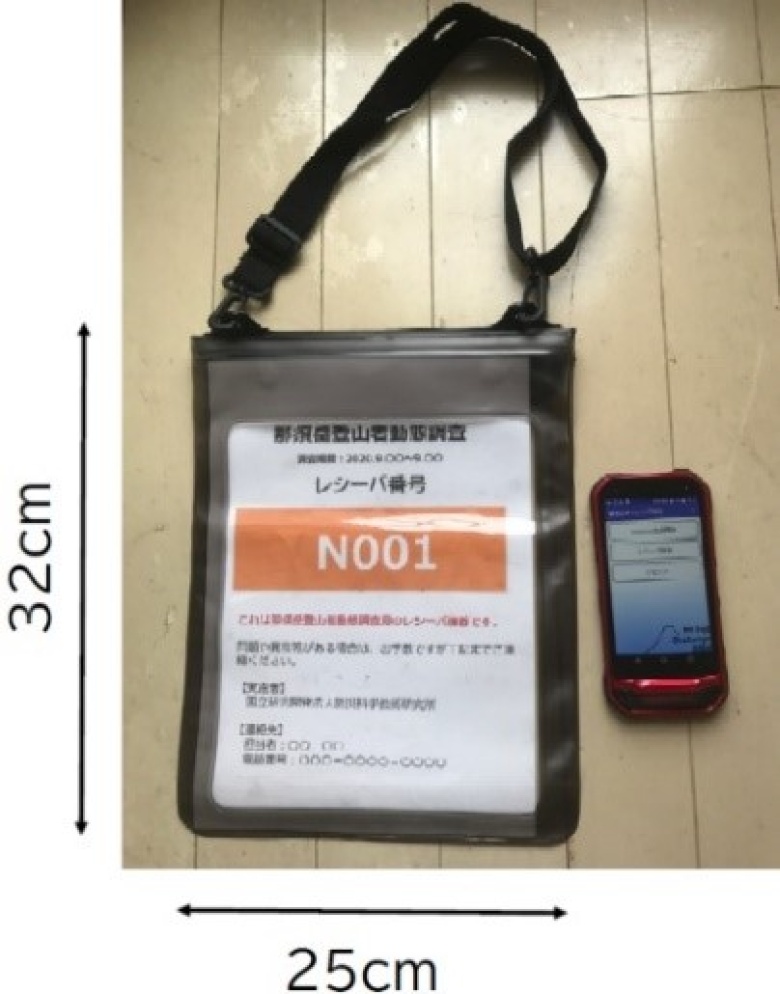 写真2. 登山道他に設置するレシーバー(スマートフォン、バッテリー、ケース)