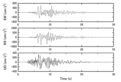 - 実験では、1995 年(平成 7 年)兵庫県南部地震(阪神・淡路大震災)時に観測された神戸海洋気象台観測波を、段階的に加振レベルを増幅させ、実際の観測レベルや、より増幅させた最大震度 7 相当の地震動を使用する予定です。