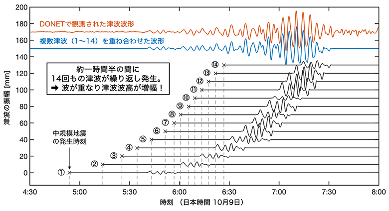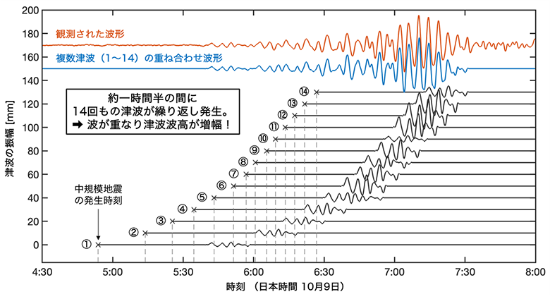 14回発生した中規模な津波が重なり合って波高が増幅した