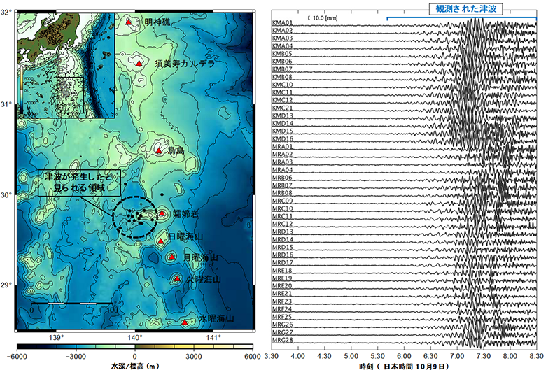 図1:2023年10月9日に鳥島近海で発生した特異な津波