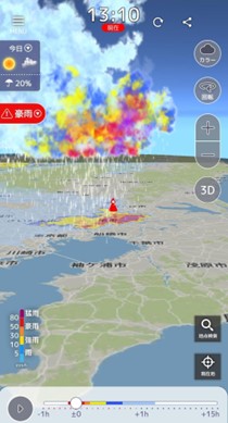 最大15分~20分前に豪雨の可能性を通知 - 通知エリア