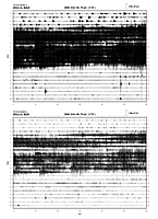 図2:2月6日の1日分のBMAS観測点(図1)の地震計(上)および空振計(下)の記録。1つのラインが1時間分の記録を表す。縦軸の時間は世界標準時に基づく。世界標準時と日本時間との差は-9時間。