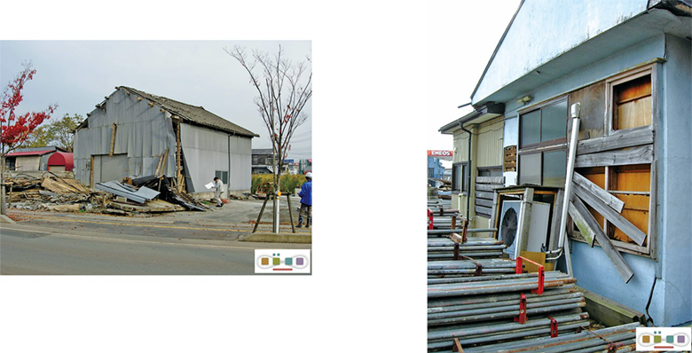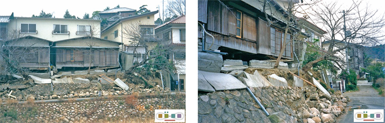 基礎が建物を支えられなくなり全体にゆがみがあらわれる - 2004年新潟県中越地震