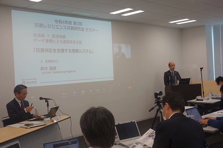 「災害レジリエンス共創研究会」は、企業、自治体、行政、大学・研究機関などの様々なステイクホルダーと防災科研の共創を目的に、ドローン、UAV、線状降水帯の予測、防災デジタルツイン、小型SAR衛星、雪氷防災などの「マルチハザード」をキーワードに先端的な研究成果を紹介し、災害レジリエンスに資する人的ネットワークやコミュニティ形成に向けた産学官民共創の種を生み育てていきます。