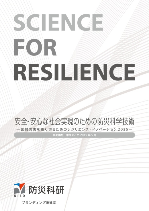 また、翌年度(2019年度)には、21世紀前半に予想される国難災害を乗り越えるための我が国の防災のあるべき姿と防災科学技術が果たすべき役割を「長期構想」として検討を進めました。その成果を基に、長期構想の中間まとめ『安全・安心な社会実現のための防災科学技術—国難災害を乗り切るためのレジリエンス・イノベーション2035-』を取りまとめました。